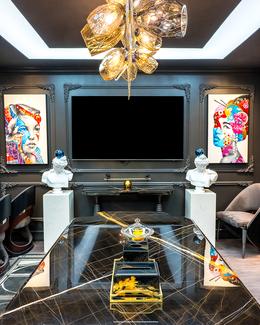 Capture intricate design elements, décor details, textures, furnishings, lighting, and materials that define the identity of the space.
